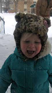 It snowed today. Not feeling so hot about that, literally. But Savannah didn't seem to mind all that much:I've been trying to have a better attitude about the seasons this year.  I hate winter so much that I usually start dreading it as soon as the first leaves fall to the ground.  Fall has always just been the intro to winter for me.  I really did appreciate fall in a new light this year - we spent a lot of time outside (with coats on) and played in leaves. I'm even a little sad to see it go.  My dad says winter is awesome because of sledding... right?  I'm not a huge sledding fan, but I think I'm going to give snowboarding a shot this year.  It's all an attempt to enjoy the seasons.  So... here we go!